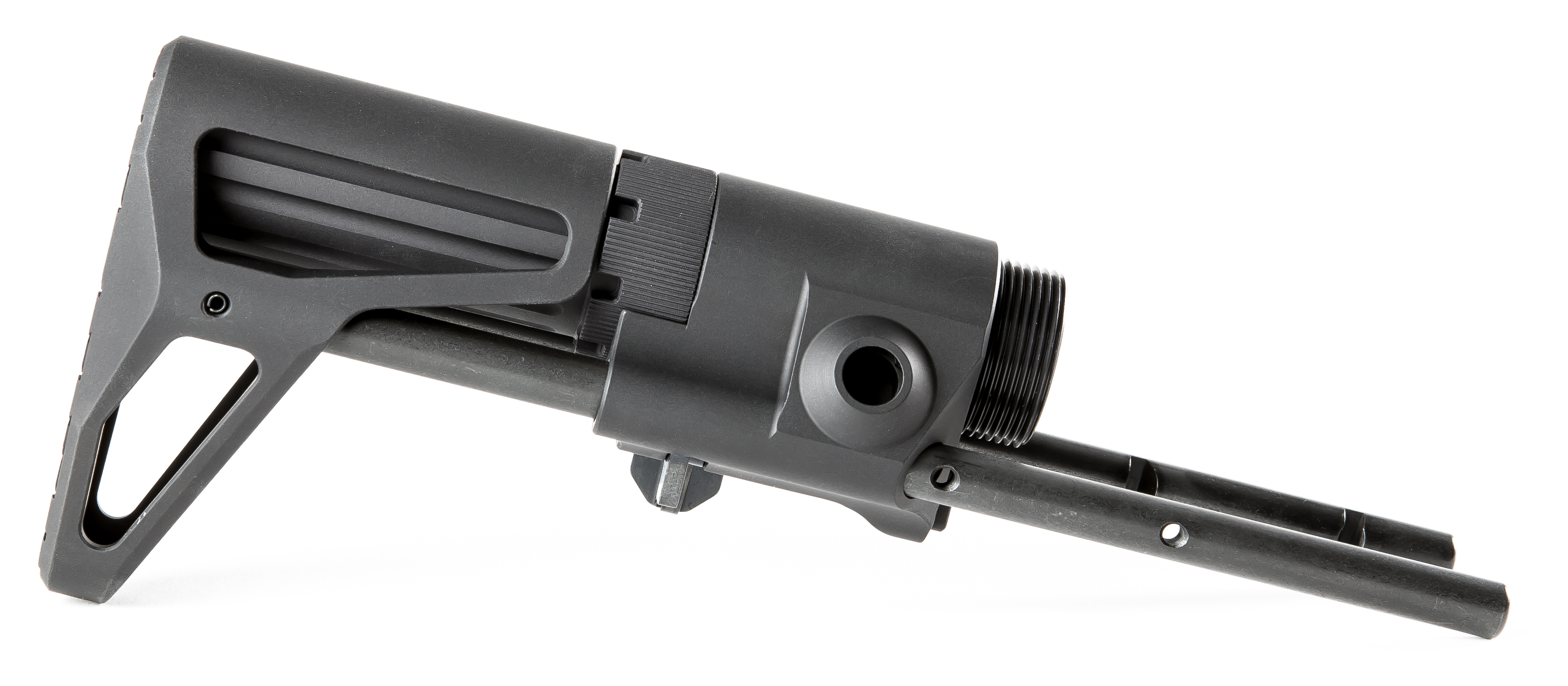 It uses a short non-standard buffer for the Maxim defense braces short buffer tube. No buttons to push just pull the stock to deploy. Independently ambi GRIP-N-RIP Charging Handle accommodates left- and right-handed shooters.
