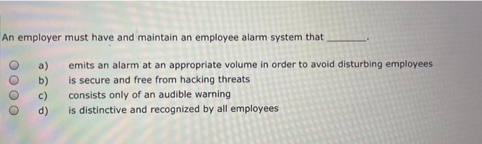 Requirement Requirement Requirement Requirement. 191037 e An Employee Alarm System Must Be Operable. Ideally alarms will be able to be heard seen or otherwise perceived by everyone in the workplace including those that may be blind or deaf.