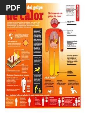 Pasarle una esponja o un paño con agua fría. Las insuficiencias orgánicas no suelen aparecer hasta 2 o 3 días después del cuadro. A insolação é uma emergência com risco de vida que necessita de tratamento imediato.